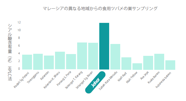 SialicX™は、燕の生育に適した環境を有するマレーシア・ジョホール州で管理採取された食用燕の巣を原料としています。ジョホール州は温暖で安定した自然環境に恵まれており、この地域で採取される燕の巣は、他地域と比較してシアル酸含有率が高い傾向があるとされています。原料は採取段階から厳格に管理され、製造工程では食品用途を前提とした品質管理体制のもと加工されています。さ